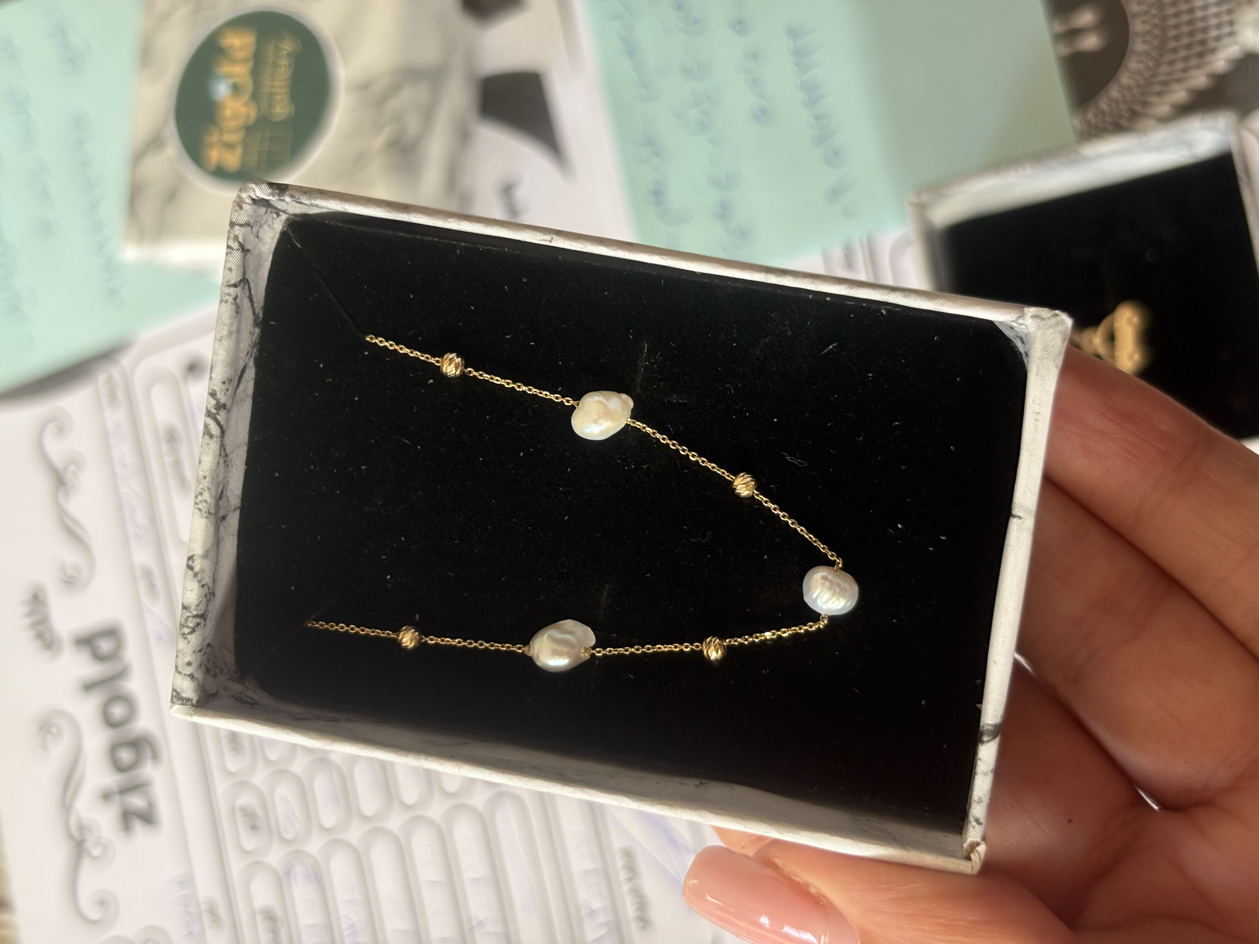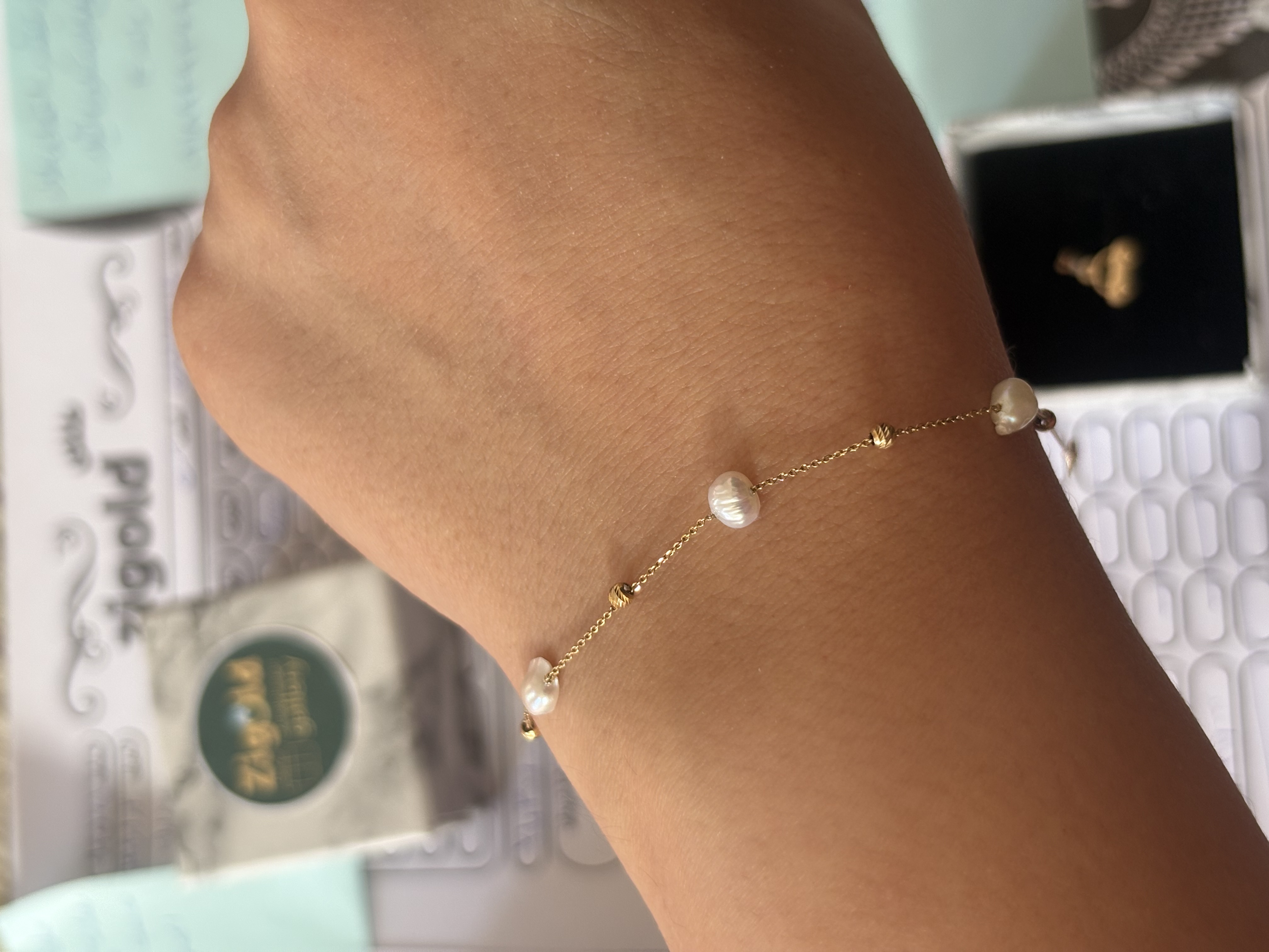 دستبند طلا مدل گوی و مروارید طبیعی دِفُرمه
